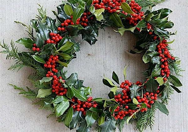 Guirnalda confeccionada con ramas y frutos de acebo