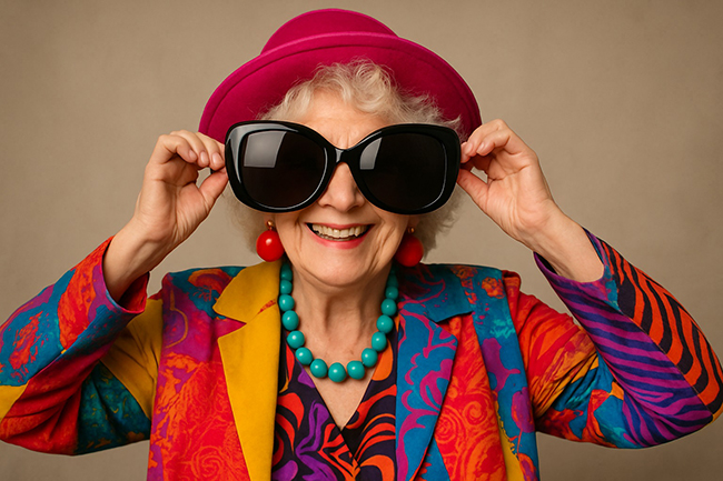 Señora mayor con ropas y anteojos extravagantes / Imagen generada por Dall-E