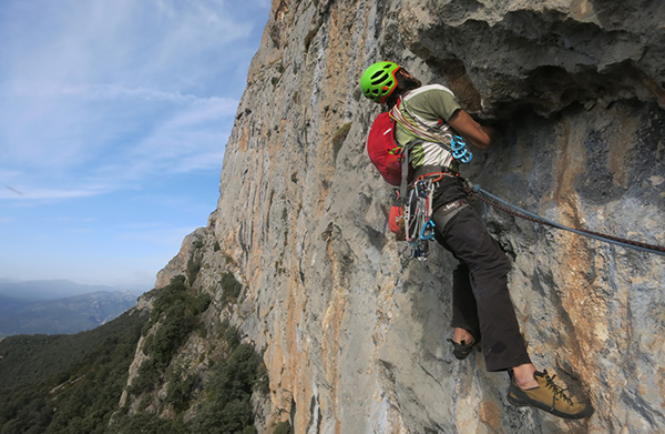 Montañista escalando una peña escarpada
