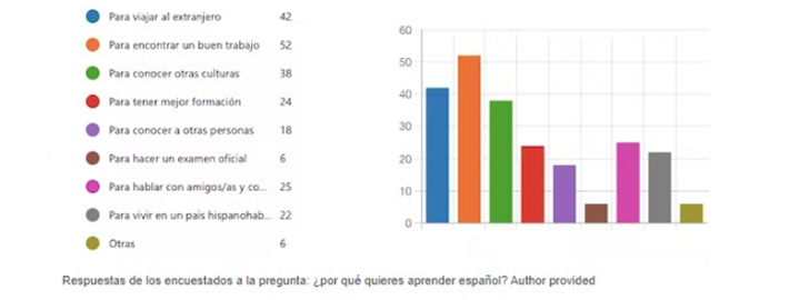 Consideramos relevante incluir la motivación en nuestro cuestionario. Por ello, incluimos la pregunta: ¿por qué estudias español?